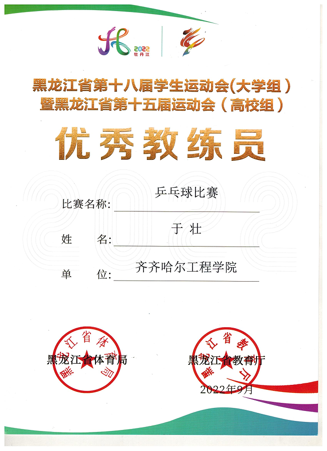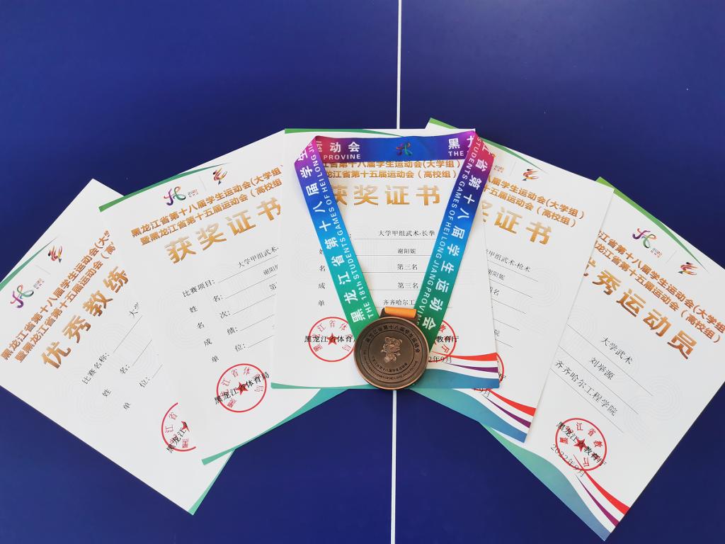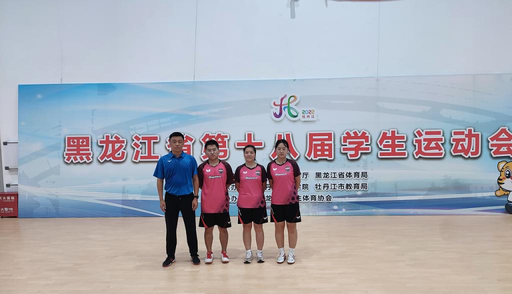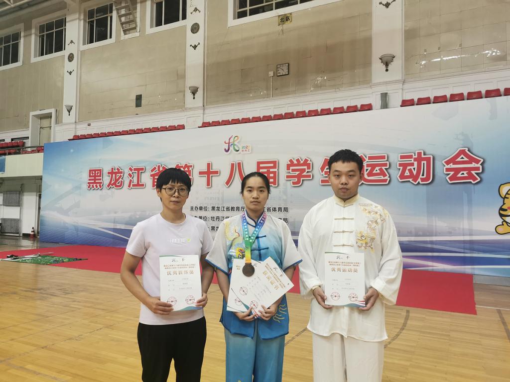 8月17日隆重开幕的黑龙江省第十八届学生运动会,本届运动会由牡丹江师范学院承办,牡丹江市教育局和黑龙江省大中学生体育协会协办。学校学生代表队参加了武术和乒乓球2个项目的角逐并获佳绩。其中,乒乓球队的刘宇婷、武术队的刘举源同学分别荣获优秀运动员称号,武术队的谢阳妮同学获得女子长拳铜牌、女子剑术第四名和女子枪术第四名的好成绩,两个的项目教练员韩淑梅和于壮老师均获优秀教练员称号。