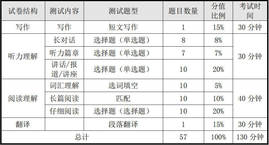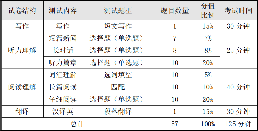 四级笔试分值分配