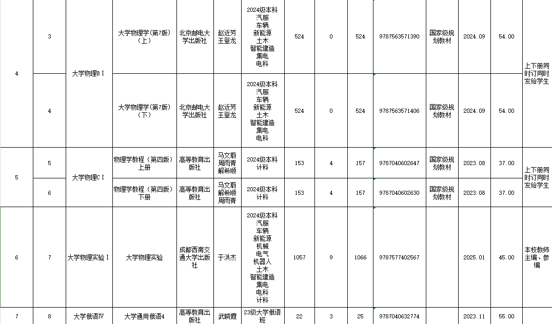 基础部严格遵循《齐齐哈尔工程学院教材管理办法(修订)》中关于教材选用的相关规定,对教材选用过程进行了全程监督,并认真落实了文件要求,未发现任何违规行为。经基础部教材工作小组审议,2024-2025学年度第二学期所选用的教材均符合各专业人才培养方案的要求,无思想政治错误,符合党和国家方针政策,教材内容具有较强的理论性、系统性和先进性,无价值导向不正确或教材封面与插图不符合大众审美等问题。