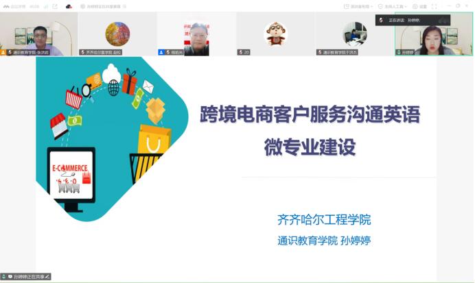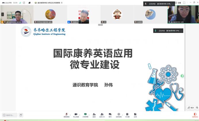 随后,齐齐哈尔医学院外语教研部的党员教师赵松老师分享了“医学英语”微专业建设的历程,从前期调研、师资队伍建设、申报书撰写、教学实施、课程评价、组织管理等多个角度分析了微专业建设的经验。齐齐哈尔工程学院通识教育学院的党员教师孙婷婷、孙伟两位老师,分别介绍了“跨境电子商务英语”“医护英语”两个微专业的开发思路,他们分别从课程定位、课程设计、课程实施和课程评价四个方面进行介绍,详细说明了运用“四真三化(FT)”课程建设模式开发微专业的方法。分享结束后,参会教师就大学外语运用能力背景下的微专业建设展开讨论,包括微专业选课机制、学分置换、运行周期等问题。程前光书记对微专业建设的师资队伍建设、门课内容及学时等提出了宝贵的建议。