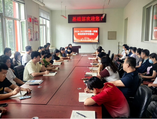 为扎实做好新学期开学各项准备工作,落实学校新学期教学工作会议精神,基础部于8月24日下午在3#2308会议室召开了2024-2025学年度第一学期教学准备会议,基础部全体教师参会。