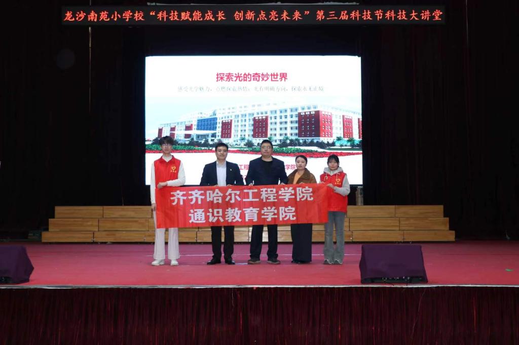为深入推进“大中小一体化”科学教育建设,通过校校合作构建贯通式科学教育体系,充分发挥高校物理实验教学资源与基础教育实践场景的协同优势,3月27日,齐齐哈尔工程学院通识教育学院师生团队走进齐齐哈尔市龙沙南苑小学校,参加龙沙南苑小学校第三届科技节启动仪式,并做专题科普讲座。