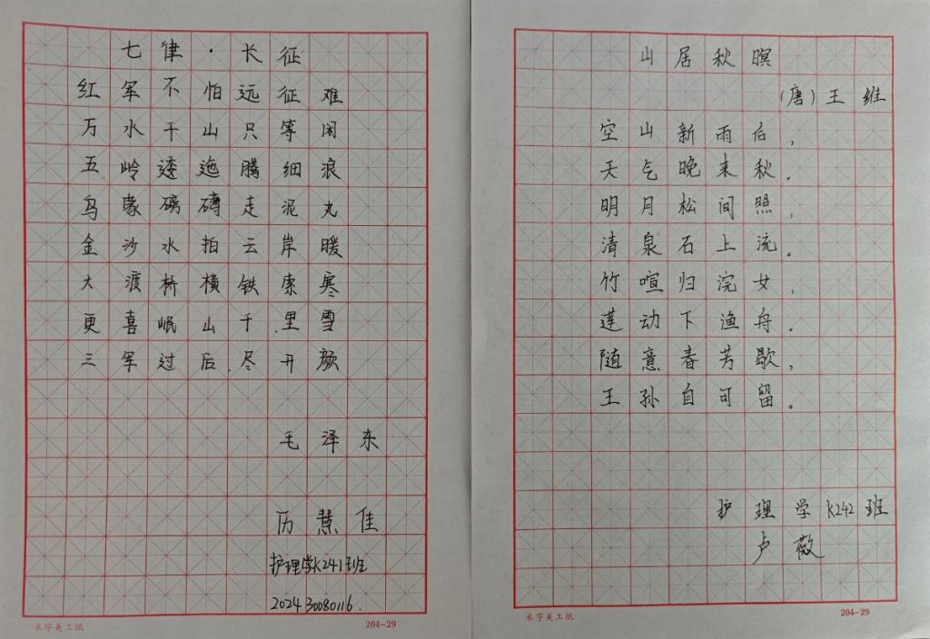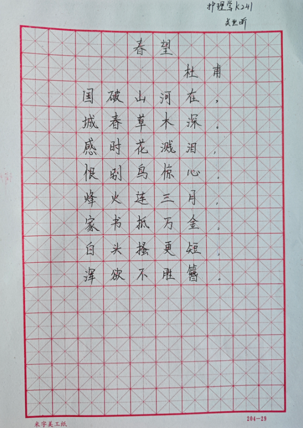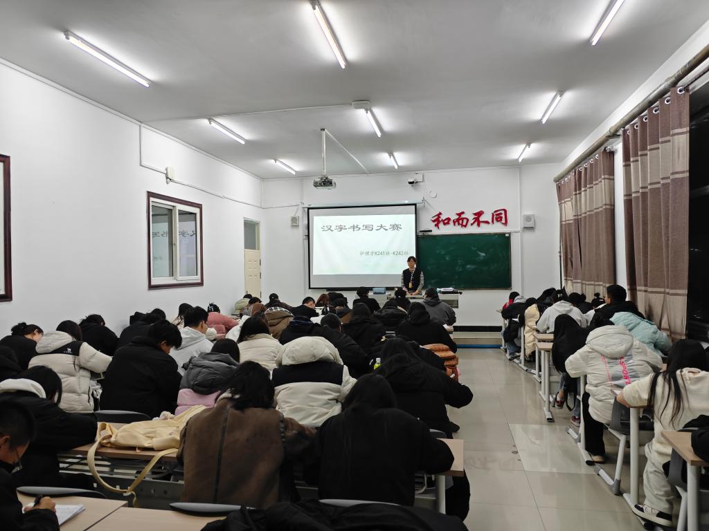 为了实现学生正确书写,激发书法创作灵感11月7日晚在1教1402教室,大学语文基础任课教师王春凤组织汉字书写大赛,护理学K2024级全体学生参加比赛。