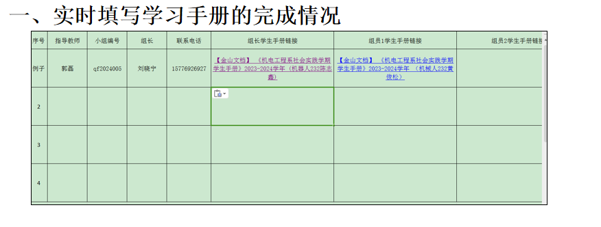 在会上,郭老师组织各组长对本小组上周学习任务的完成情况进行汇报;各组在汇报中,将组员的完成情况进行汇总,以数字化的形式列示,并对尚未完成的学生进行了通报。组长汇报结束后,郭老师对目前各组的完成情况进行点评,他指出,目前已经有小组成员提前完成了各项任务,提前完成任务的学生要检查手册撰写质量,仍要坚持每人打卡;尚未完成学习任务的学生要抓紧,要保质保量的完成各项目任务。