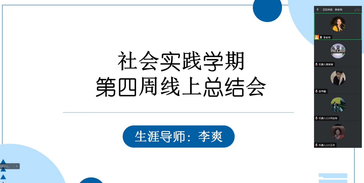 本周机器人工程专业生涯导师李爽召开社会实践学期第四周线上总结会,此次会议共十人参加。