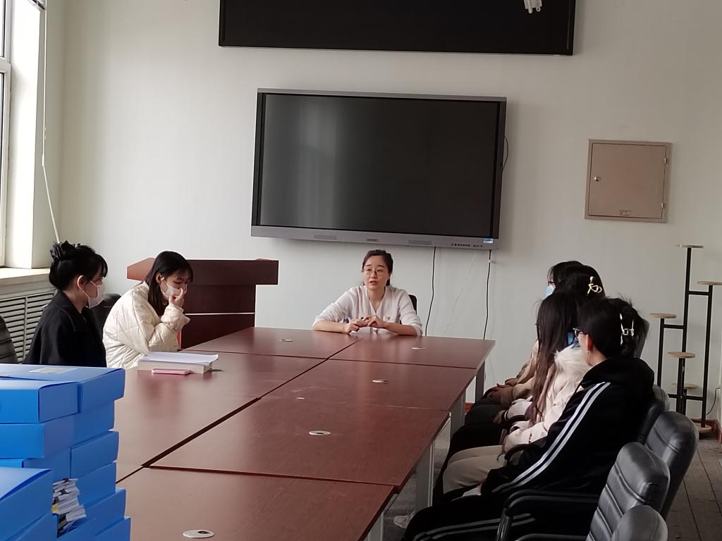 2024年11月19日,王丽影在3教2308组织生涯学生学习学校办学理念。