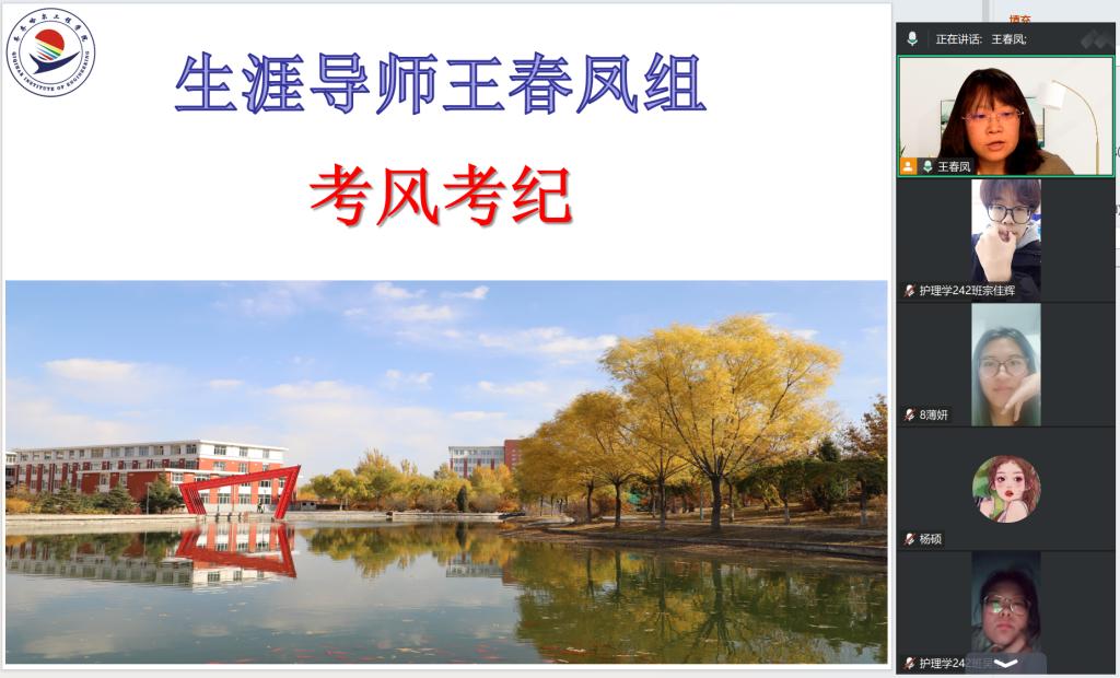 12月3日晚,生涯导师王春凤面向全体生涯学生召开了考风考纪专题教育会议,全体学生准时参会,会议通过腾讯会议平台进行。