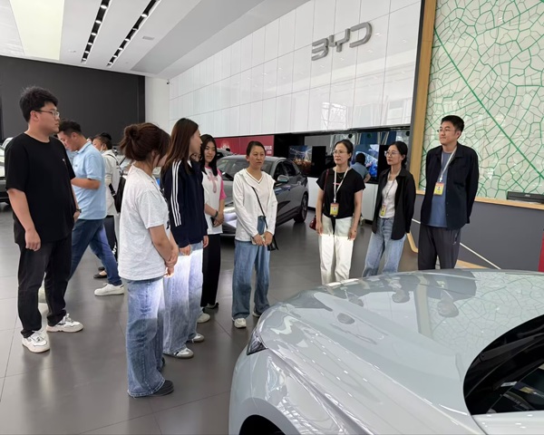 刘双丽和孙德梅通过跟着机械专业带学生进企业,参加入企业第一课——安全教育,了解到机械专业工作中安全的重要性,也了解到不同的工作场地对安全设施的基本要求、操作的基本安全要素等,对后续的学生实践内容有了更深刻的理解。徐怡和史紫嫣深入机电学院学生实习地,参观了比亚迪骏迪4S店,拓宽了视野,也对教学有了新的启发,通过汽服专业学生介绍,观察了4S店的运营模式,从产品展示、客户接待到售后服务,感受到企业对流程标准化和用户体验的重视,明确英语作为“工具”在产业发展中的实际价值,为后续教学改革提供了更贴合现实需求的方向。