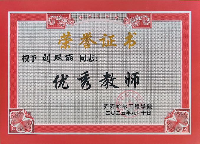 2025年9月10日,学校在人民会堂召开庆祝2025年教师节暨表彰奖励大会,大学外语教研室教师刘双丽获得校级“优秀教师”称号。