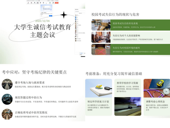 为引导生涯学生树立诚信考试意识,严守考场纪律,12月4日,大学物理教师为生涯学生召开诚信考试主题会议。