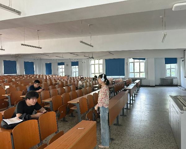 为确保大学英语期末考试和2024年6月15、16日的全国大学英语四六级、全国英语应用能力A级考试顺利进行,大学外语教师于2024年6月5日14:00至15:00间对听力播放设备和各考场音频接收情况进行检测,并指导学生进行耳麦的使用。