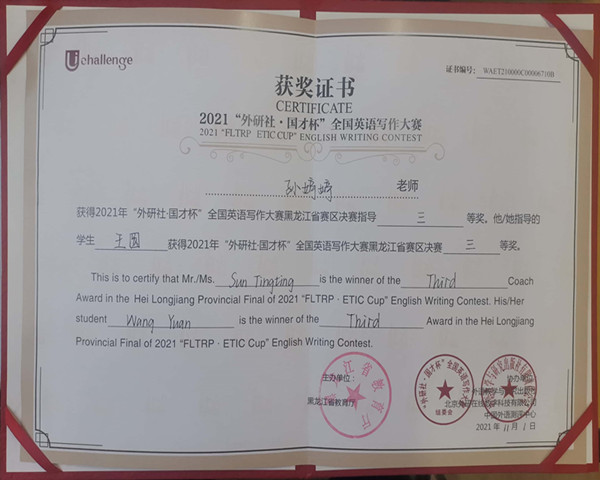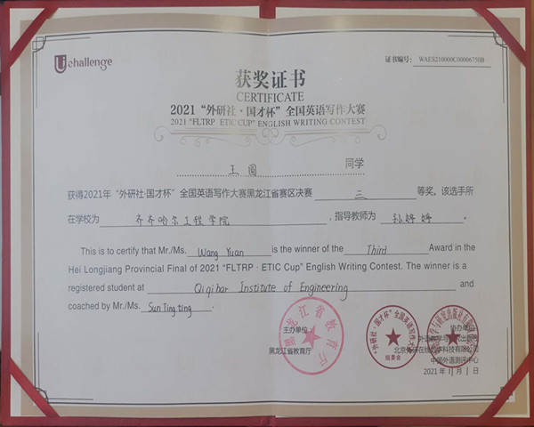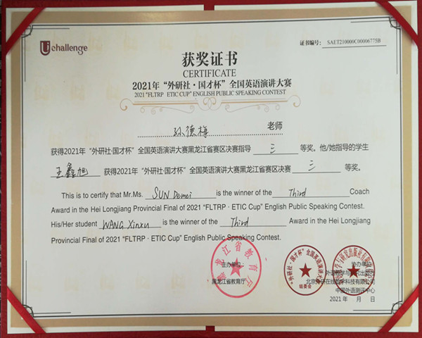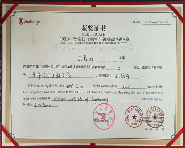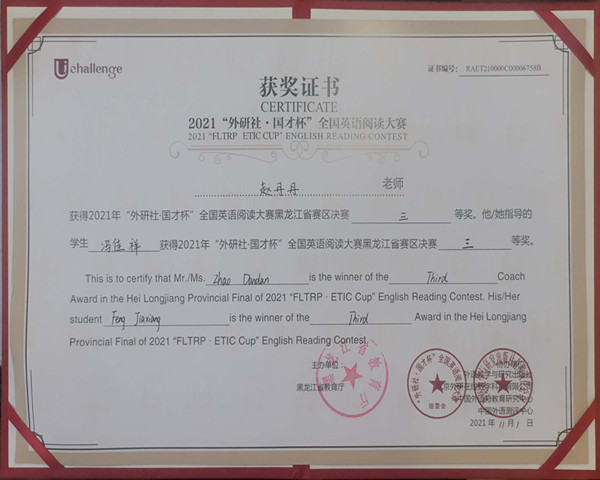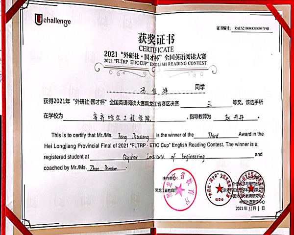 2021年“外研社·国才杯”全国英语演讲、写作、阅读大赛黑龙江省赛区决赛成绩于近日公布,本次大赛是由黑龙江省教育厅主办,黑龙江外国语学院和黑龙江财经学院承办的英语综合能力竞赛。