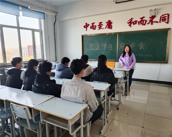 机械专业的生涯导师刘双丽在主题班会上不仅教育学生要珍惜来之不易的大学生活,解释了学校的考试纪律,要求学生要诚信考试,还邀请了几位学长分享自己的学习体会。