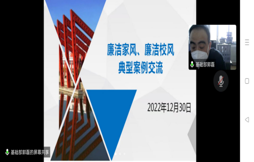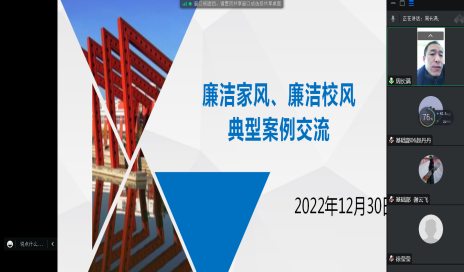 为树立新时代共产党人的良好家风,落实校纪委《关于开展“弘扬清廉家风 建设勤廉龙江”主题宣传教育活动》,大力弘扬清廉和勤廉思想,营造廉洁家风、校风的文化氛围,使全体党员教师增强廉洁从政、廉洁用权、廉洁修身、廉洁齐家的政治自觉和思想自觉。12月30日基础部党支部举行“廉洁家风、廉洁校风”典型案例交流会,会议由党支部书记王可心主持,基础部全体党员参会。