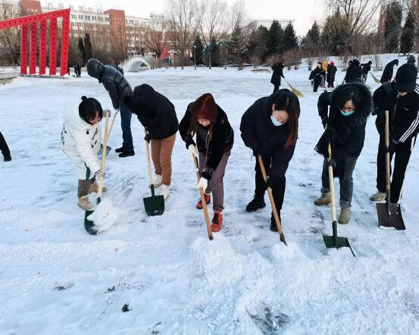 以冰为媒,激发灵感、碰撞创意、集思广益,并于后续落实构想,制定详细的活动方案、规程总则等,保障各项冰雪活动有序推进。天气虽冷,但易湖上回荡着的清雪声音与劳动的高亢口号交相呼应,汇聚温暖,驱散严寒,为冬季的校园增添了别样风景。