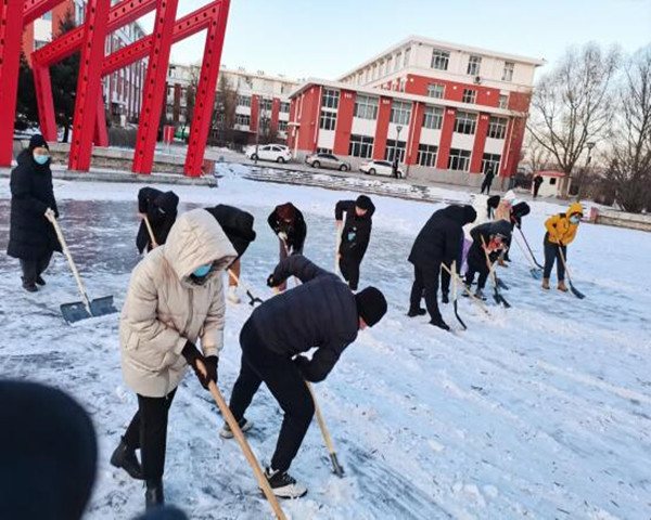 为践行使命、彰显担当,优化冰雪运动环境、保障冰上活动顺利开展,11月28日下午,基础部党支部书记程薇薇带领支部全体党员教师开展“易湖”冰场清雪志愿服务活动。