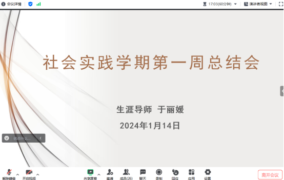 2024年1月14日,生涯导师于丽媛召开了社会实践学期第一周总结会,所指导的30名学生参加了此次会议。