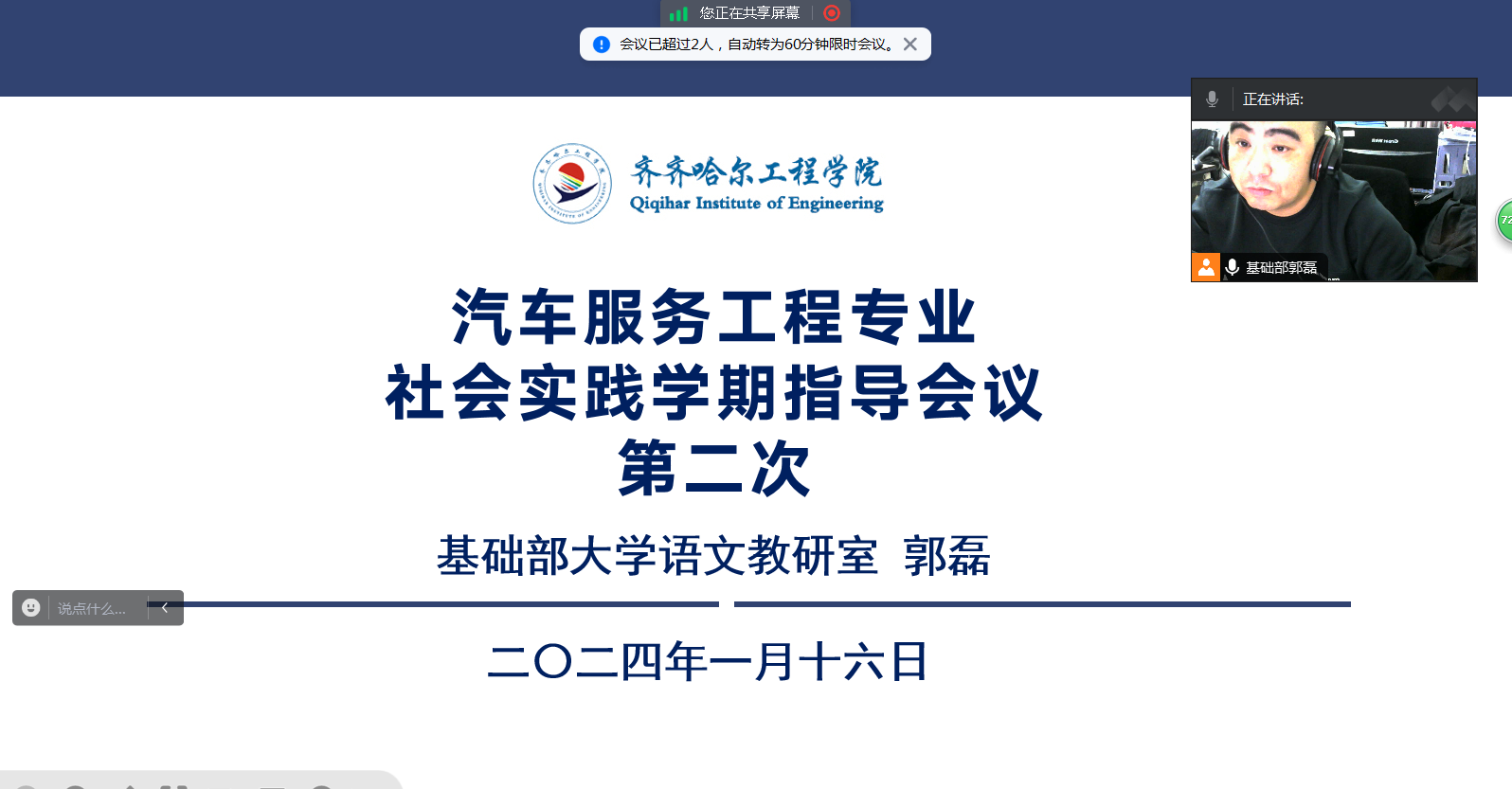 1月16日下午,生涯导师郭磊在线上召开机电工程系2024年社会实践学期qf2024005-qf2024010第二周指导会议,6个小组21名学生参加了此次会议。