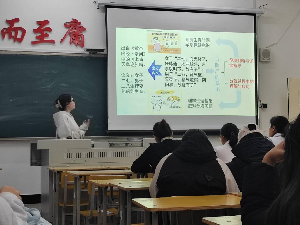 在决赛中,参赛选手从《黄帝内经》中择取与助产学专业相关段落,深度阐释其内涵,并结合助产学专业实际,讲述经典对孕期保健、产后护理、母婴健康促进等方面的启示与应用。他们采用 PPT 形式进行健康管理宣讲。