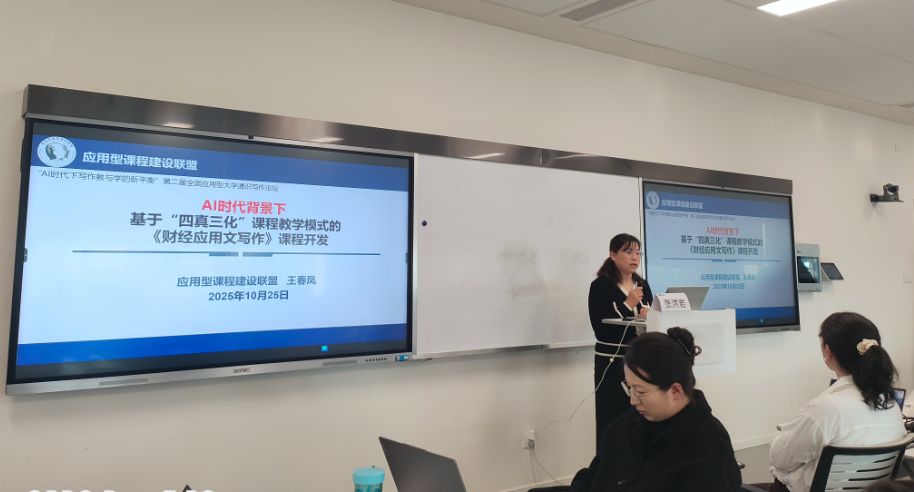 10月25日,“AI时代下写作教与学的新平衡”第二届全国应用型大学通识写作论坛在西安欧亚学院举办,来自全国40余名高校教师参会。通识教育学院副院长张洪岩、教师王春凤作为应用型课程建设联盟讲师受邀参会,组织开展“四真三化”课程开发工作坊。