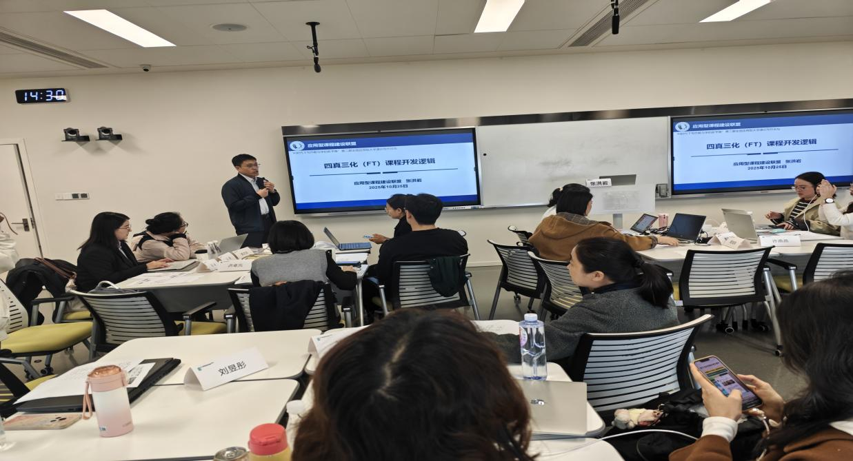 下午,张洪岩老师担任“四真三化(FT)”课程开发工作坊主持,工作坊分为集中精讲报告和分组研修两部分。首先,张洪岩以《课程开发逻辑》为主题,简要介绍了应用型课程建设联盟和“四真三化”课程开发工作坊,系统阐述了课程开发的逻辑、方法,并分享了AI背景下数智化平台课程通赋能课程建设的齐齐哈尔工程学院的经验。