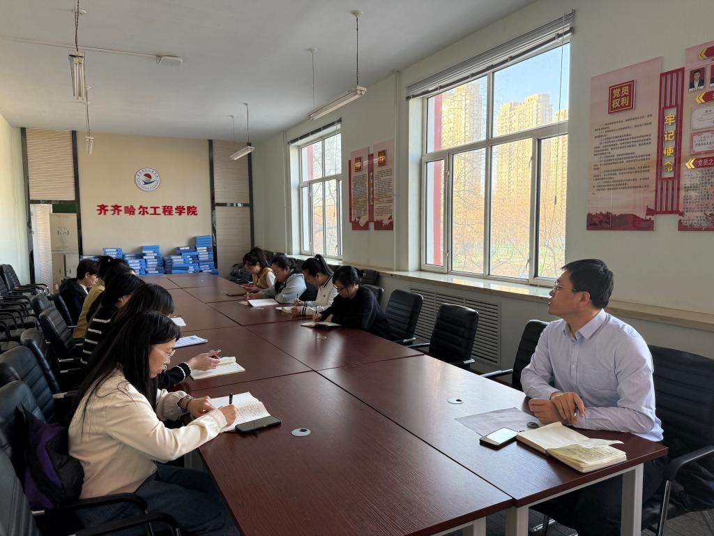 根据学校党委关于组织开展学习贯彻党的二十届四中全会精神培训工作的有关要求,为深入学习贯彻国家“十五五”时期经济社会发展的战略部署,推动通识教育与国家需求同频共振,3月11日下午,齐齐哈尔工程学院通识教育学院党支部在3#2308会议室组织召开专题学习研讨会。全体党员参加会议,会议由党支部书记张洪岩主持。