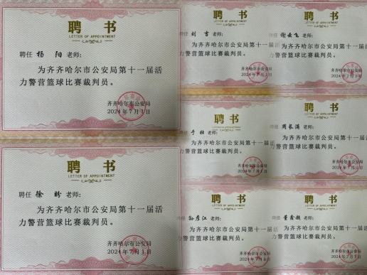 7月4日-7月23日,齐齐哈尔市公安局举办了为期14天的篮球竞赛,为全面贯彻落实服务社会的共同责任和使命,共同筑建阳光体育活动,我校8名体育教师受邀担任本次竞赛的裁判员工作.
